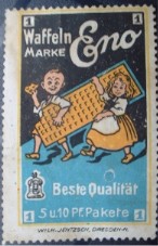 WAFFEL-Marken Hier kann man sich auch eine Waffel kleben. Die Waffelmarke Eno hat hier eine Waffelmarke. Zwei Kinder tragen eine riesige Waffel - die natürlich gleich vernascht werden muß.